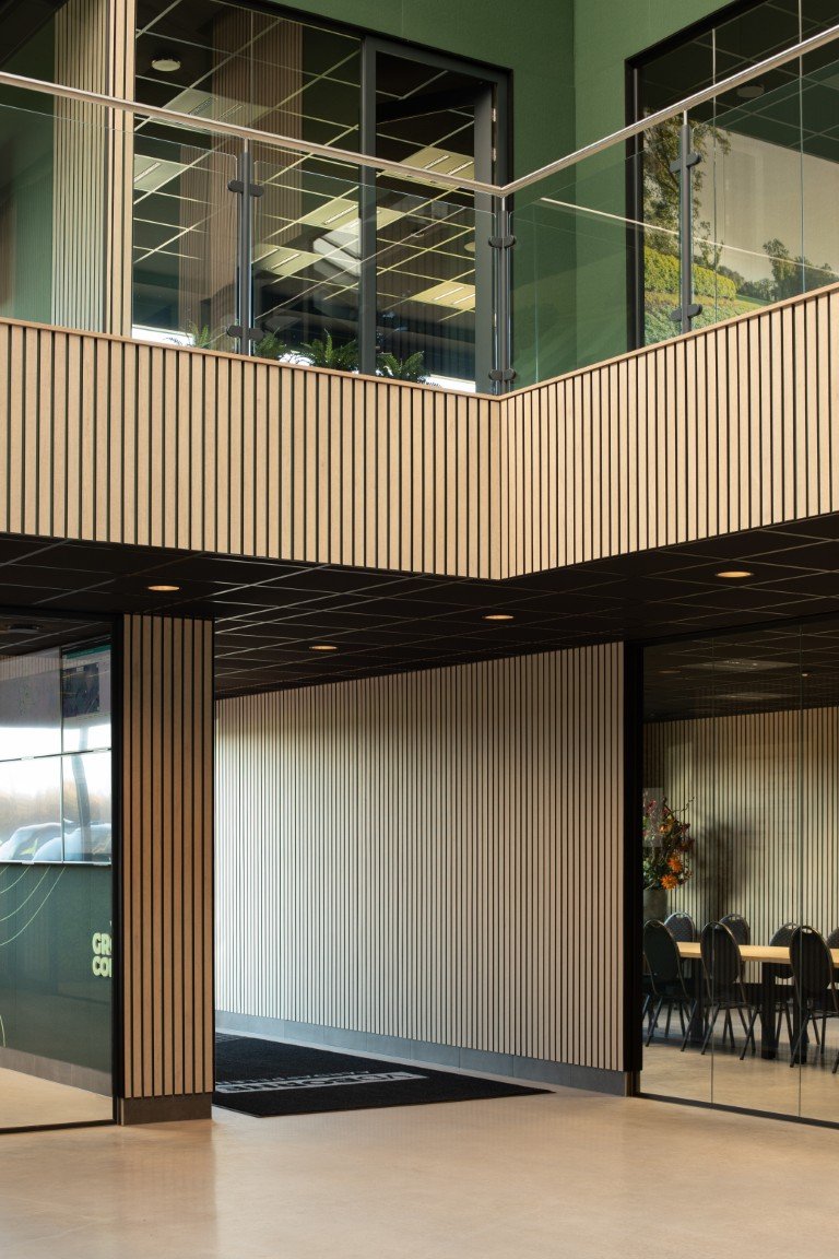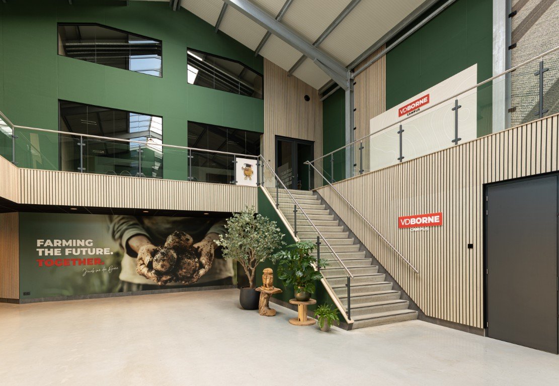 Op de VD Borne Campus komt alles samen: werken, vergaderen, produceren en ontmoeten. Van kleinschalige werkplekken tot grote werkplaatsen en eventzalen vraagt zo’n omgeving om akoestiek die rust brengt, zonder in te leveren op uitstraling.